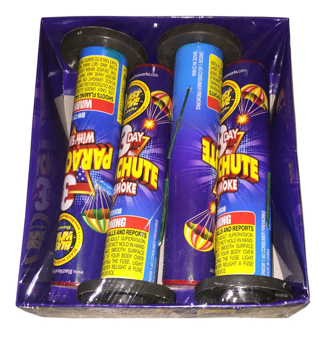 This parachute pack incudes 3 daytime parachutes for some high flying fun.