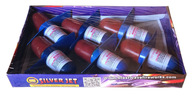 The classic large silver jet. Always a great performer as it spins skyward with a huge tail of silver sparks.